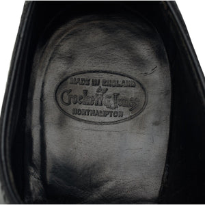Crockett & Jones 'Courtaney' U-throat oxford in black calf. In excellent used condition, showing minor signs of wear and light creasing across the vamps.
