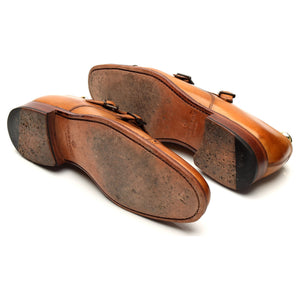 Grenson 'Ellery' double buckle monk strap in tan brown calf. In excellent used condition, showing minor signs of wear.
