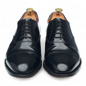 Barker cap toe oxford in black polished calf. In excellent used condition, showing minor signs of wear.