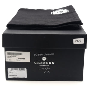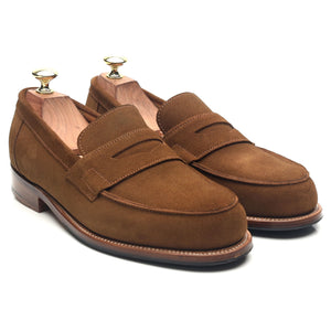 Grenson's 'Epsom' penny loafer in snuff brown suede. In excellent condition.