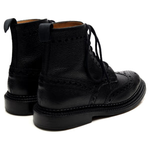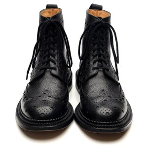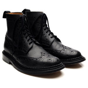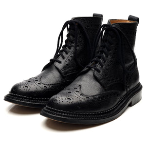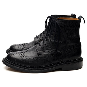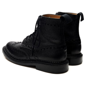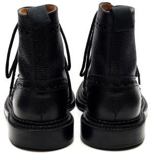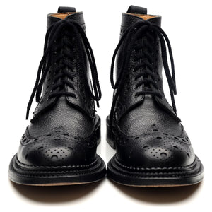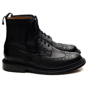Grenson One Triple Welt 'Fred' brogue boots in black grain calf. In excellent used condition, showing minor signs of wear.