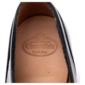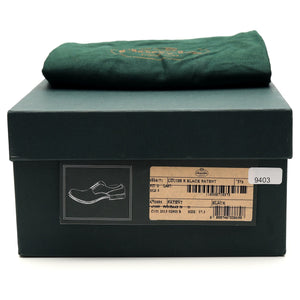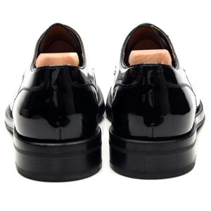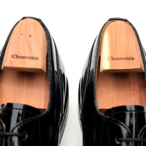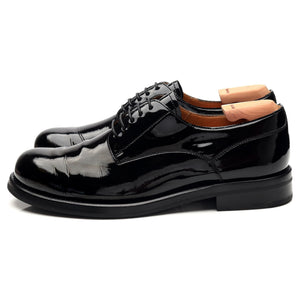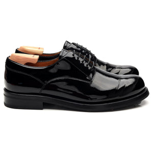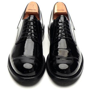 Church's 'Louise' plain toe derby in black patent leather. In excellent used condition.