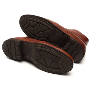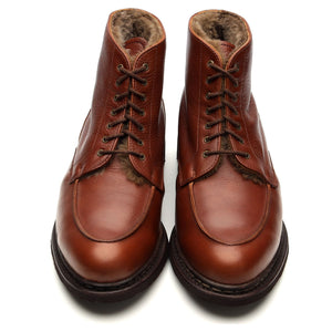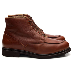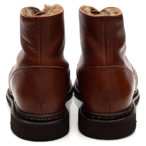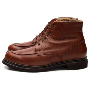 Paraboot 'Austral Fourre' sheepskin lined apron boots in 'chestnut' tan brown grain leather. In excellent used condition.