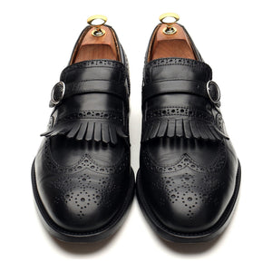'Magnan' Black Leather Fringed Monk Strap Brogues UK 9.5 EU 43.5