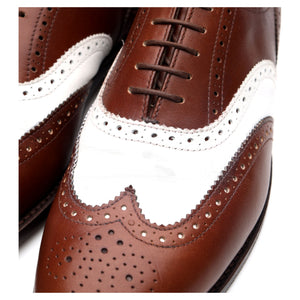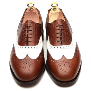 Sanders spectator brogues in brown and white calf. In excellent used condition, showing minor signs of wear.