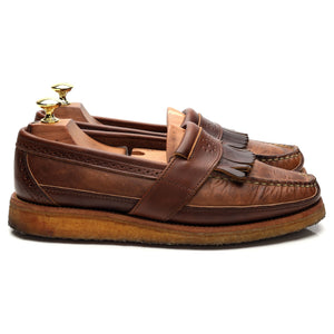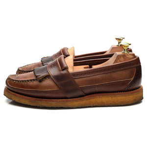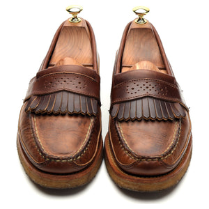 Mocassins à franges Yuketen en cuir marron. En excellent état d'usage, présentant de légères traces d'usure.