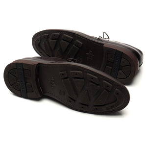 Derby Heschung « Crocus » à bout uni en veau marron foncé. En excellent état d'usage.