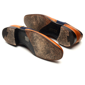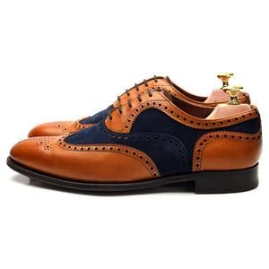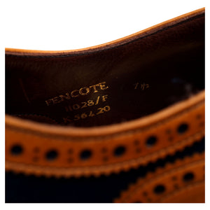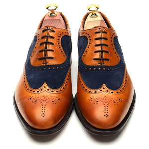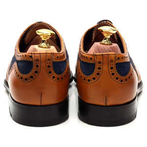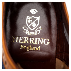 Richelieu « Fencote » fabriqué par Cheaney pour Herring en cuir de veau marron châtain et daim bleu marine. En excellent état d'usage.