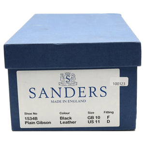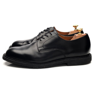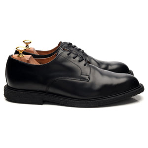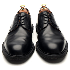 Derby à bout uni, fabriqué par Sander pour Universal Works, en cuir de veau poli noir. En excellent état d'usage.