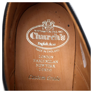 Derbys Church's « Glasgow » à bout golf en cuir de veau poli noir. En excellent état d'usage, présentant de légères traces d'usure et des plis sur l'empeigne.