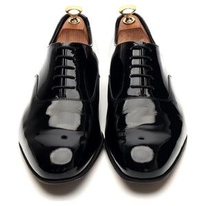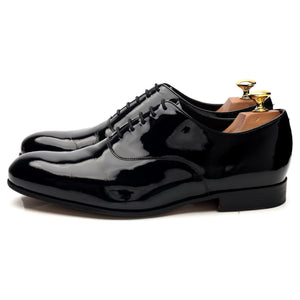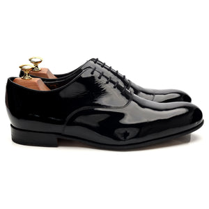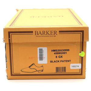 Barker 'Madeley' plain toe oxford in black patent leather. In excellent used condition.