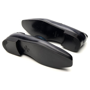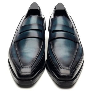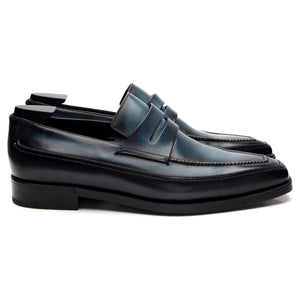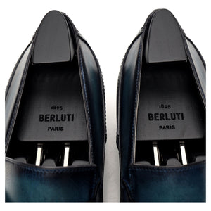 Mocassins Berluti 'Andy' en veau patiné Oceanic Wave bleu marine.