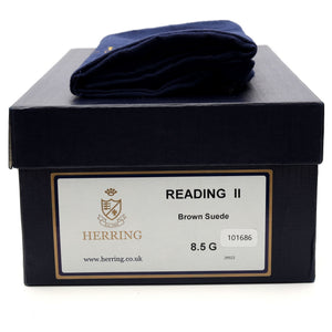 Herring 'Reading II' oxford, semi brogue, in dark brown suede. In excellent used condition.