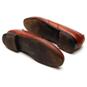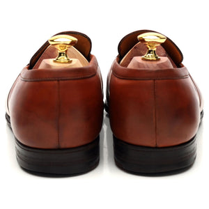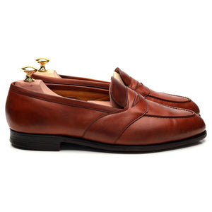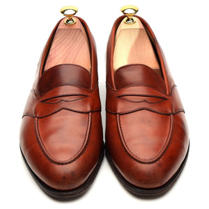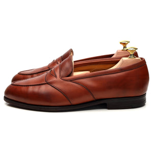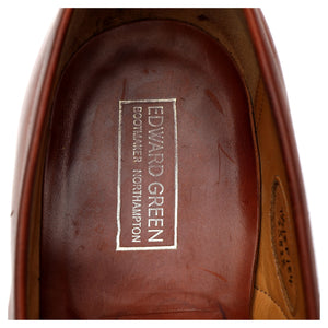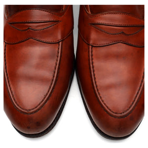 Mocassins à brides pleines « Montpellier » Edward Green en cuir de veau antique marron châtain. En très bon état d'usage, avec quelques taches de décoloration et des traces d'usure modérées.