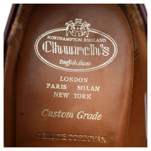 Church's 'Grafton' derby brogue in burgundy cordovan leather. In excellent used condition, showing minor signs of wear.