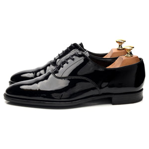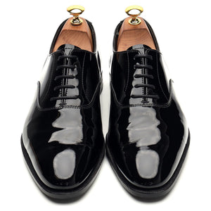 Crockett & Jones 'Overton' plain toe oxford in black patent leather. In excellent used condition.