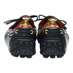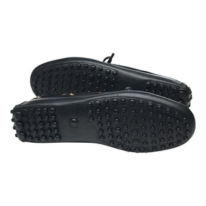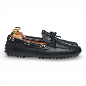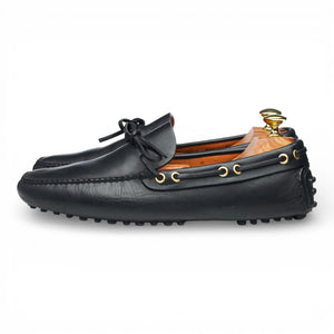 Car Shoe driving loafer in black calf. In excellent used condition, showing minor signs of wear.