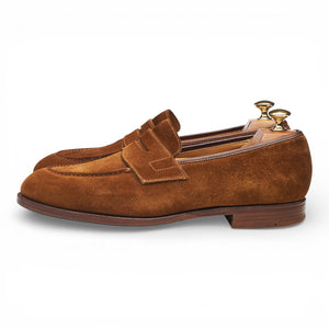 Crockett & Jones 'Eaton' penny loafers in snuff brown suede. In excellent used condition, showing minor signs of wear.