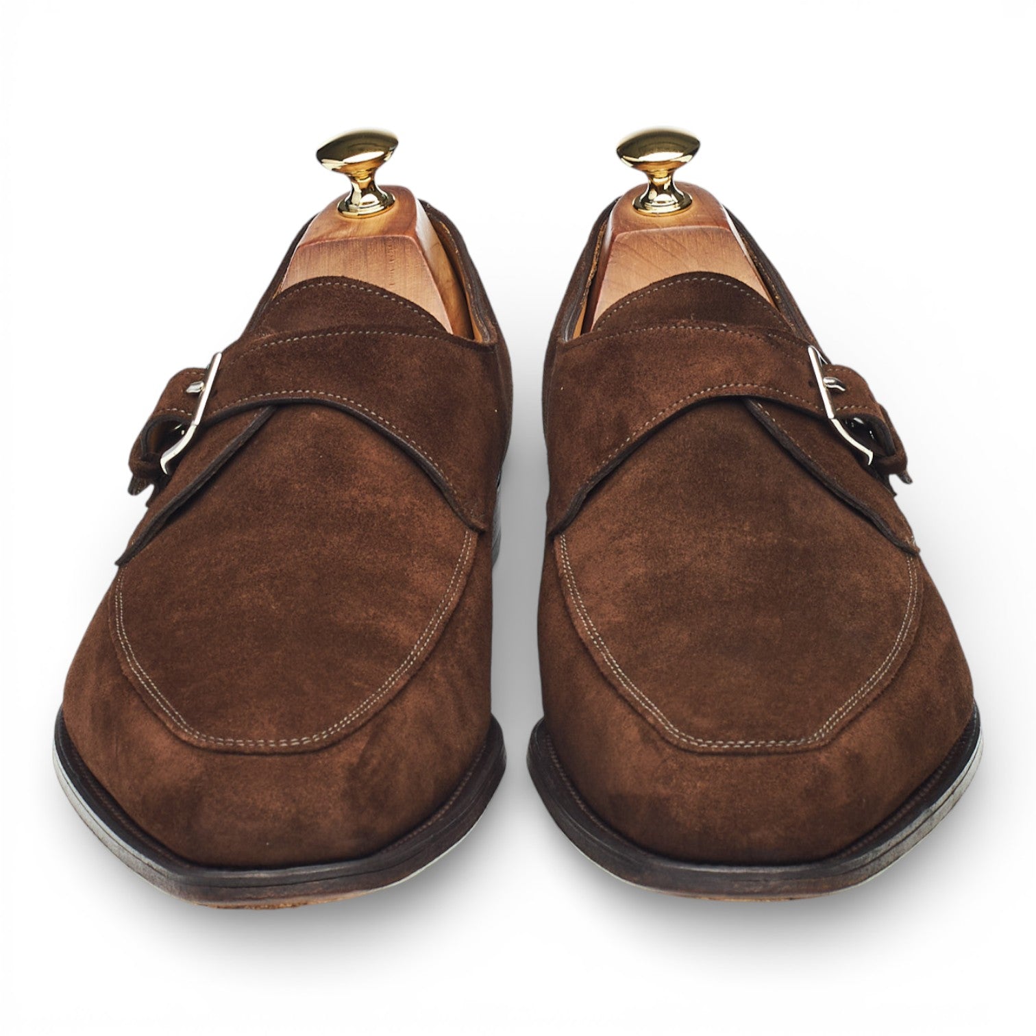 Une option contemporaine, un peu moins formelle que l'Oxford classique. Abbot's Shoes propose une gamme de chaussures à boucle simple et double d'occasion, en daim et en cuir.
