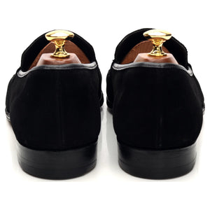 Crockett & Jones manufactured for New & Lingwood slip-on loafers in black suede. In excellent used condition, showing minor signs of wear.