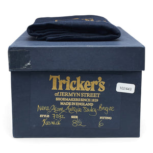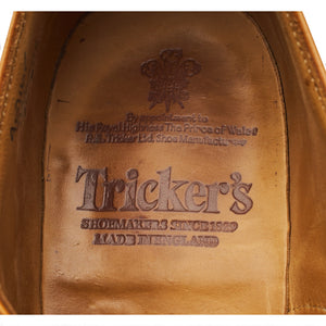 Tricker's 'Keswick' derby brogues in acorn antique tan brown calf. In excellent used condition, showing minor signs of wear.