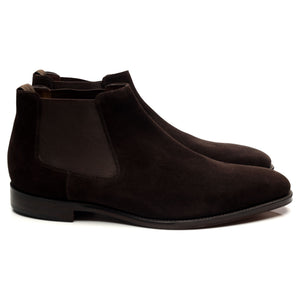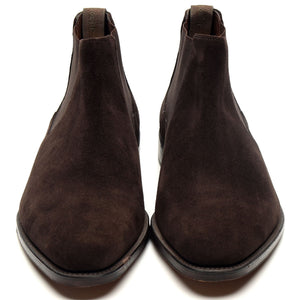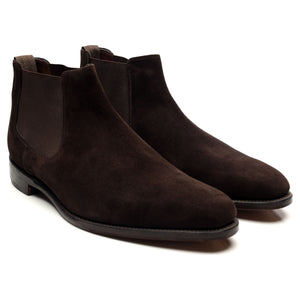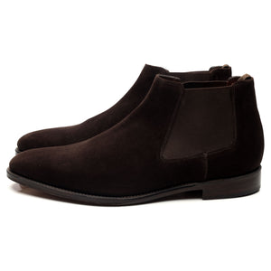 Bottines Chelsea Loake 1880 'Nene' en daim marron foncé.
