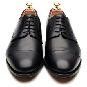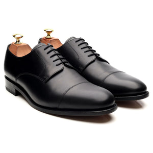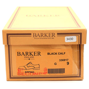 Derbys à bout rapporté Barker « Epping » en cuir de veau noir. Attention, ces modèles sont marqués « seconde main ».