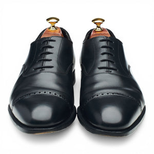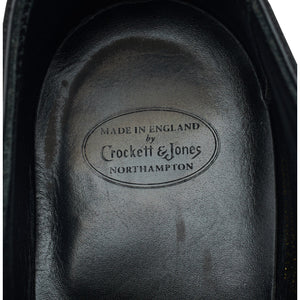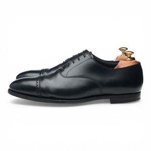 Crockett & Jones 'Belgrave' cap toe oxford, with broguing, in black calf. In very good used condition, showing moderate signs of wear.