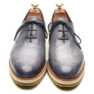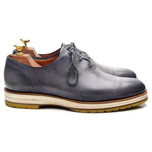 Richelieu Berluti « Alessio » en veau patiné bleu. En excellent état d'usage, avec quelques légères traces d'usure.