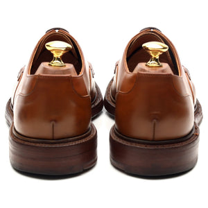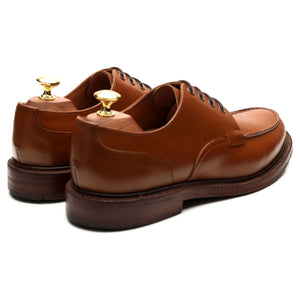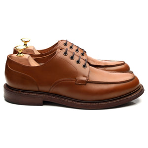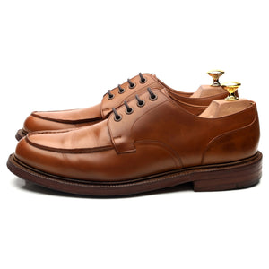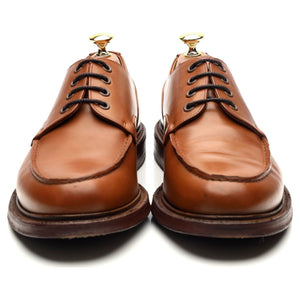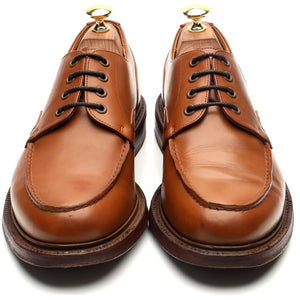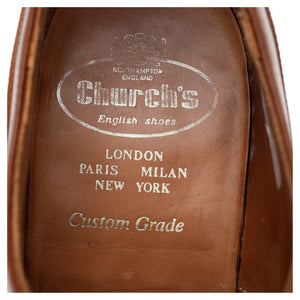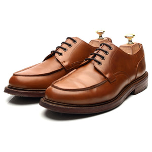 Derby à tablier « Brixham » de Church's en cuir de veau poli marron clair. En très bon état d'usage, présentant des traces d'usure modérées, avec des marques de décoloration et des éraflures sur le dessus.
