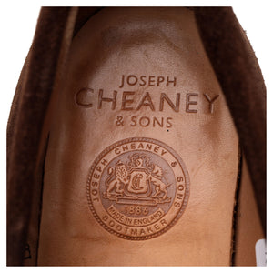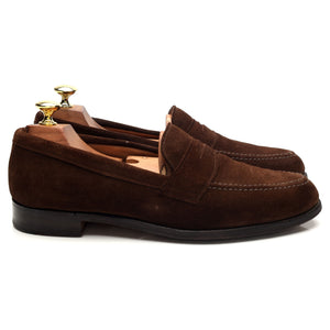 Cheaney 'Cannon' penny loafers in brown suede. In excellent used condition, showing minor signs of wear.
