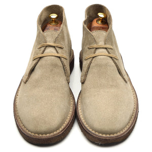 Drake's 'Clifford' unlined chukka boots in sand suede. In excellent used condition, showing minor signs of wear.