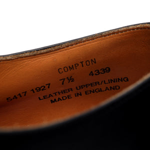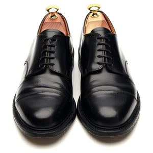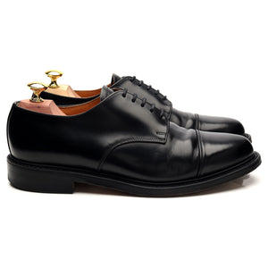 Derby Alfred Sargent « Compton » à bout droit en cuir de veau poli noir. En très bon état d'usage, présentant des traces d'usure modérées et quelques plis sur l'empeigne.