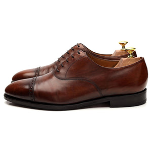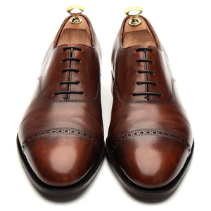 Richelieus semi-brogue John Lobb « Domingo » à bout droit en veau marron. En excellent état d'usage, présentant de légères traces d'usure.