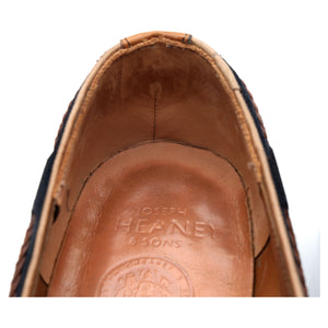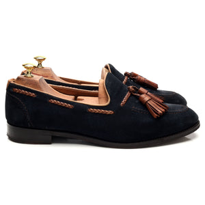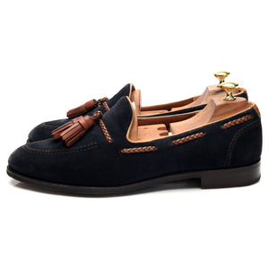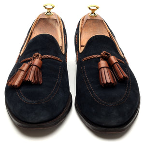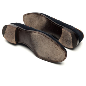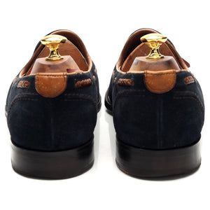Mocassins à pampilles Cheaney « Hubert » en daim bleu marine, avec pampilles en cuir marron. En excellent état d'usage, présentant de légères traces d'usure.