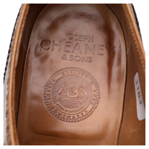 Mocassins Cheaney « Moorgate » à bride en veau marron. En très bon état d'usage, présentant des traces d'usure modérées. À noter : les embouts ont été patinés par l'ancien propriétaire.