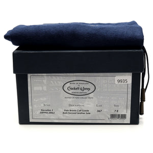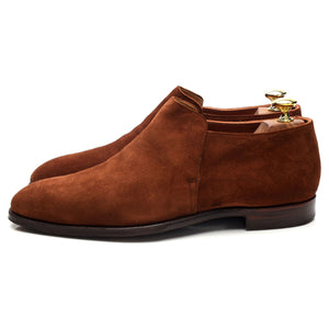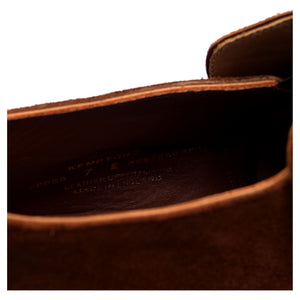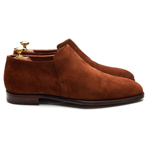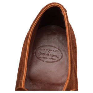 Bottines Chelsea basses « Kempton 3 » de Crockett & Jones en daim marron tabac « Polo ». En excellent état d'usage, présentant de légères traces d'usure.