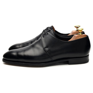Derby à bout uni en cuir de veau noir, fabriqué par Crockett & Jones pour Kilgour. En excellent état d'usage, présentant de légères traces d'usure.