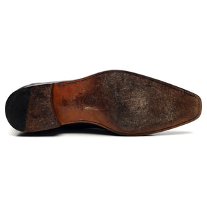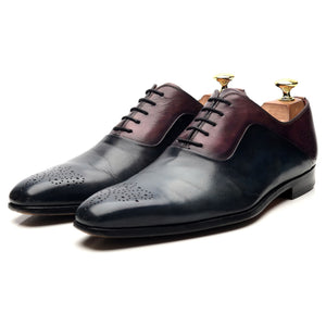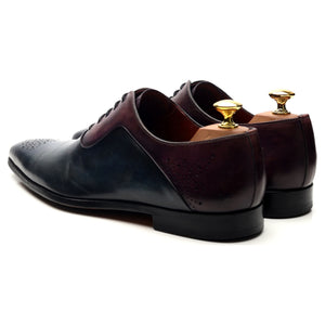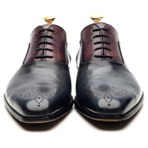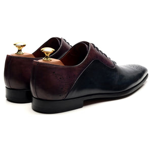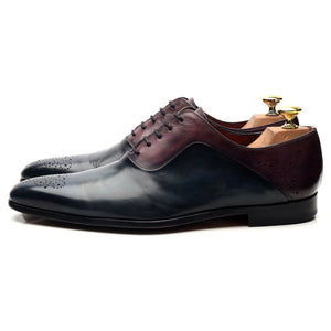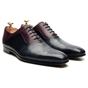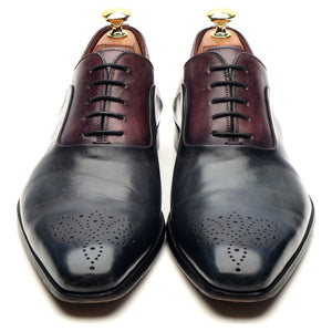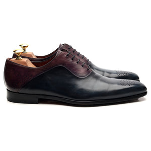 Richelieu Magnanni en cuir de veau patiné bleu marine et violet. En excellent état d'usage, présentant de légères traces d'usure.