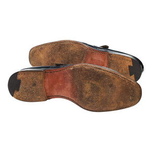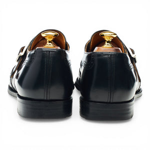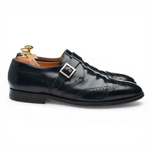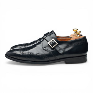 Church's 'Piccadilly' single buckle monk strap, with broguing, in black polished calf. In very good used condition, showing moderate signs of wear.