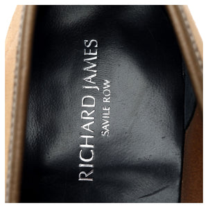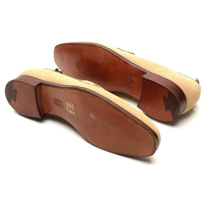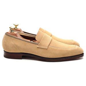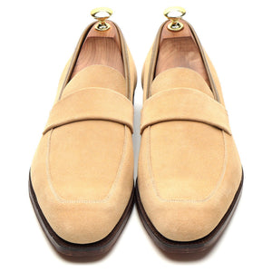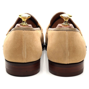 Crockett & Jones a fabriqué pour Richard James le mocassin penny « Walton » en daim beige.