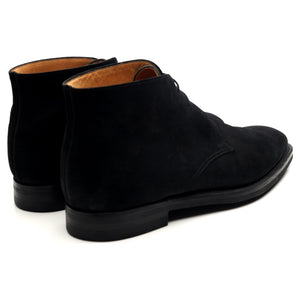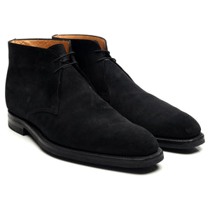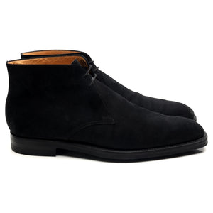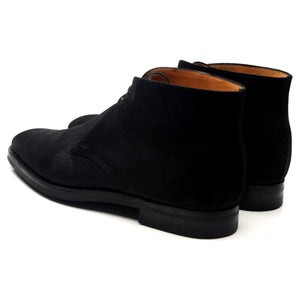 Bottines chukka « Tetbury » de Crockett & Jones en daim noir. En excellent état d'usage, avec de légères traces d'usure.