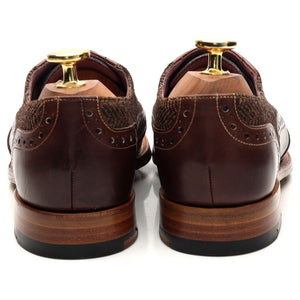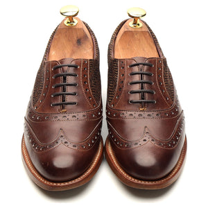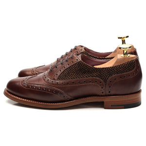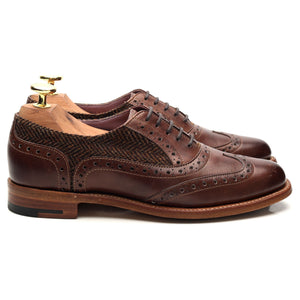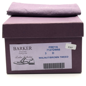Richelieus Barker « Freya » en veau marron noyer et tweed marron. En excellent état d'usage.