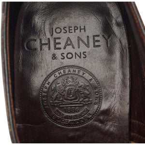 Cheaney 'Osborne' cap toe derby in dark brown calf. In excellent used condition, showing minor signs of wear.