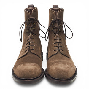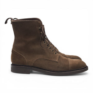 Carmina '80184' cap toe boots in brown suede. In excellent used condition, showing minor signs of wear.