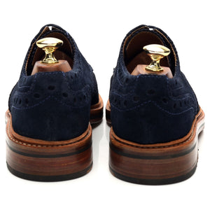 Grenson 'Archie' derby wingtip brogue in navy blue suede. In excellent used condition, showing minor signs of wear.