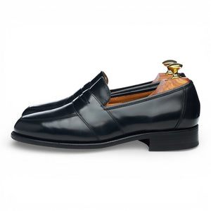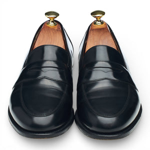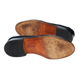 Barker full strap penny loafers in black polished calf. In excellent used condition, showing minor signs of wear.
