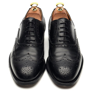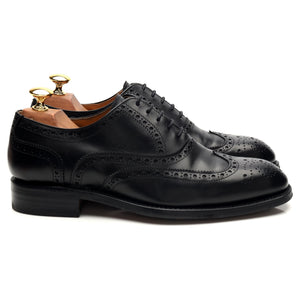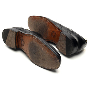 Richelieus à bout golf en cuir de veau noir, à motif hareng. En excellent état d'usage, présentant de légères traces d'usure.