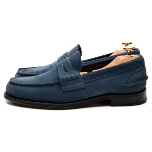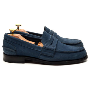 Mocassins Church's « Pembrey » non doublés en daim bleu. En excellent état d'usage, présentant de légères traces d'usure.