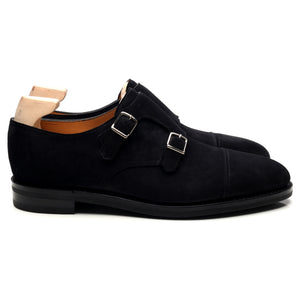 Chaussures à double boucle « William » de John Lobb en daim noir. En excellent état d'usage.